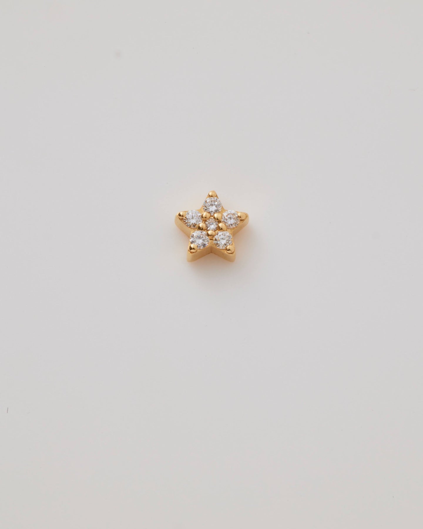 A side view showing a solid gold star charm adorned with sparkling diamonds. The five-pointed star charm features brilliant-cut diamonds, creating a shimmering effect. A small hole at the top of the allows the charm to be threaded through with a necklace chain.
