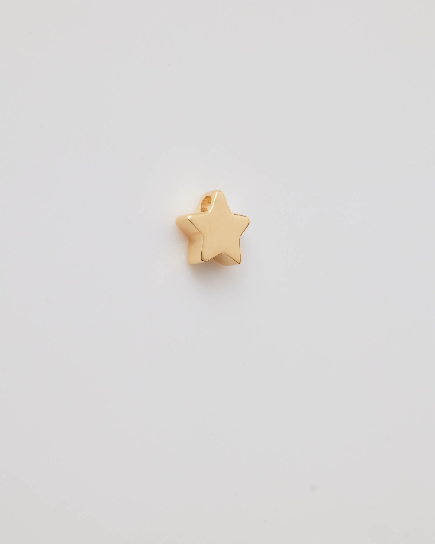 The reverse view of a solid gold star pendant with a smooth, polished surface, showcasing its clean lines and symmetrical five-pointed design. The pendant has a small hole at the top for attaching to thread a chain, blending seamlessly with the star&