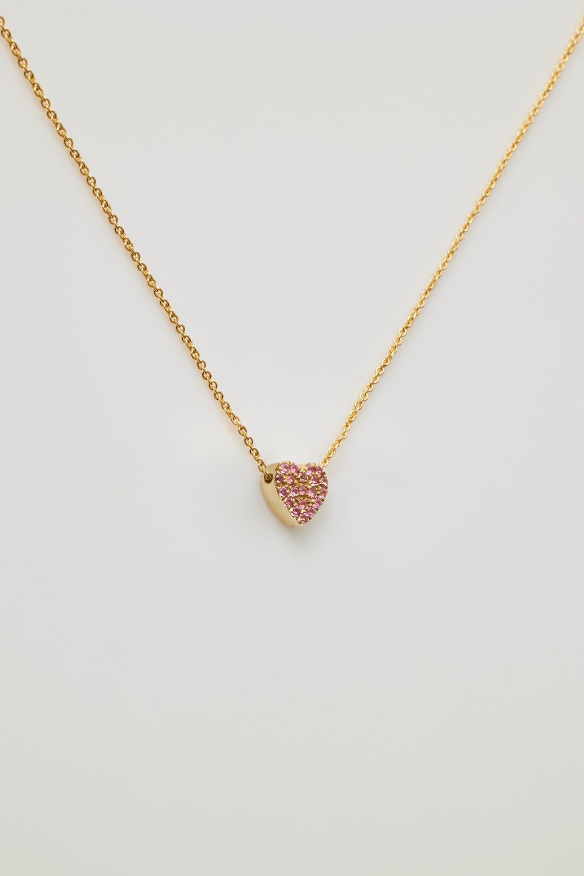Includes: 14K Gold Chain (16"-18" adjustable) with Screw Barrel Clasp + 1 Pavé Pink Sapphire Heart Charm.