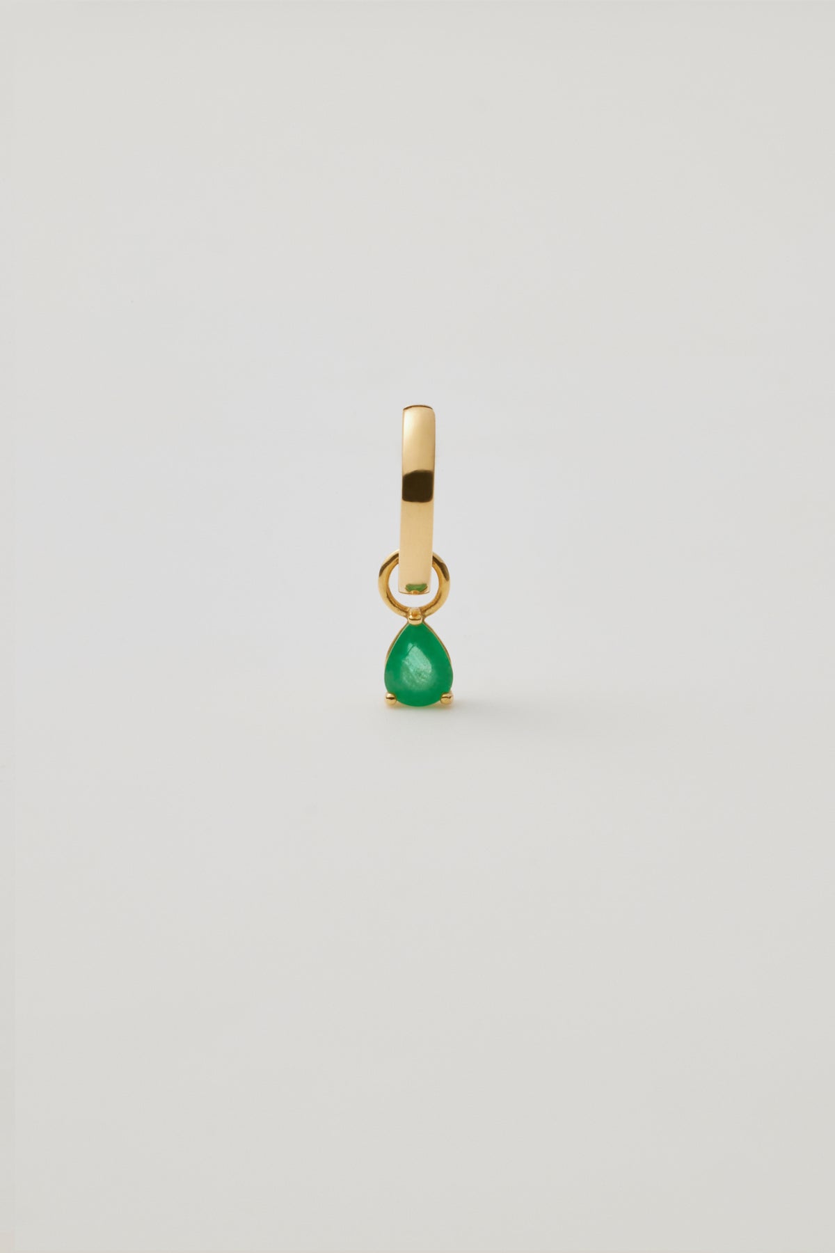 Crafted in 14k solid gold, this single huggie earring is designed for versatility. It features an interchangeable green tourmaline pear charm. The innovative hinged mechanism lets you simply slide the charm off and switch it with another, allowing you to personalise, rearrange, and build a piece that’s uniquely yours.