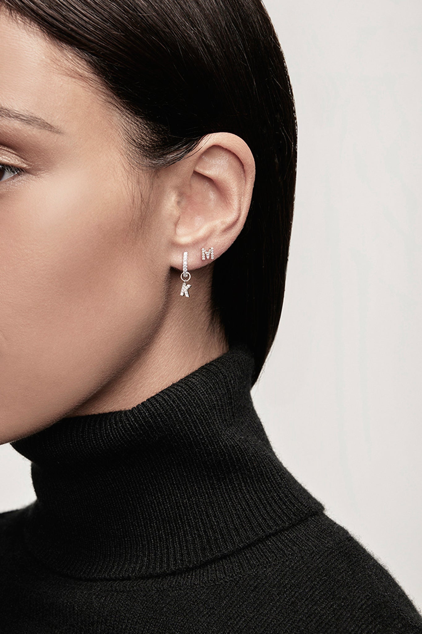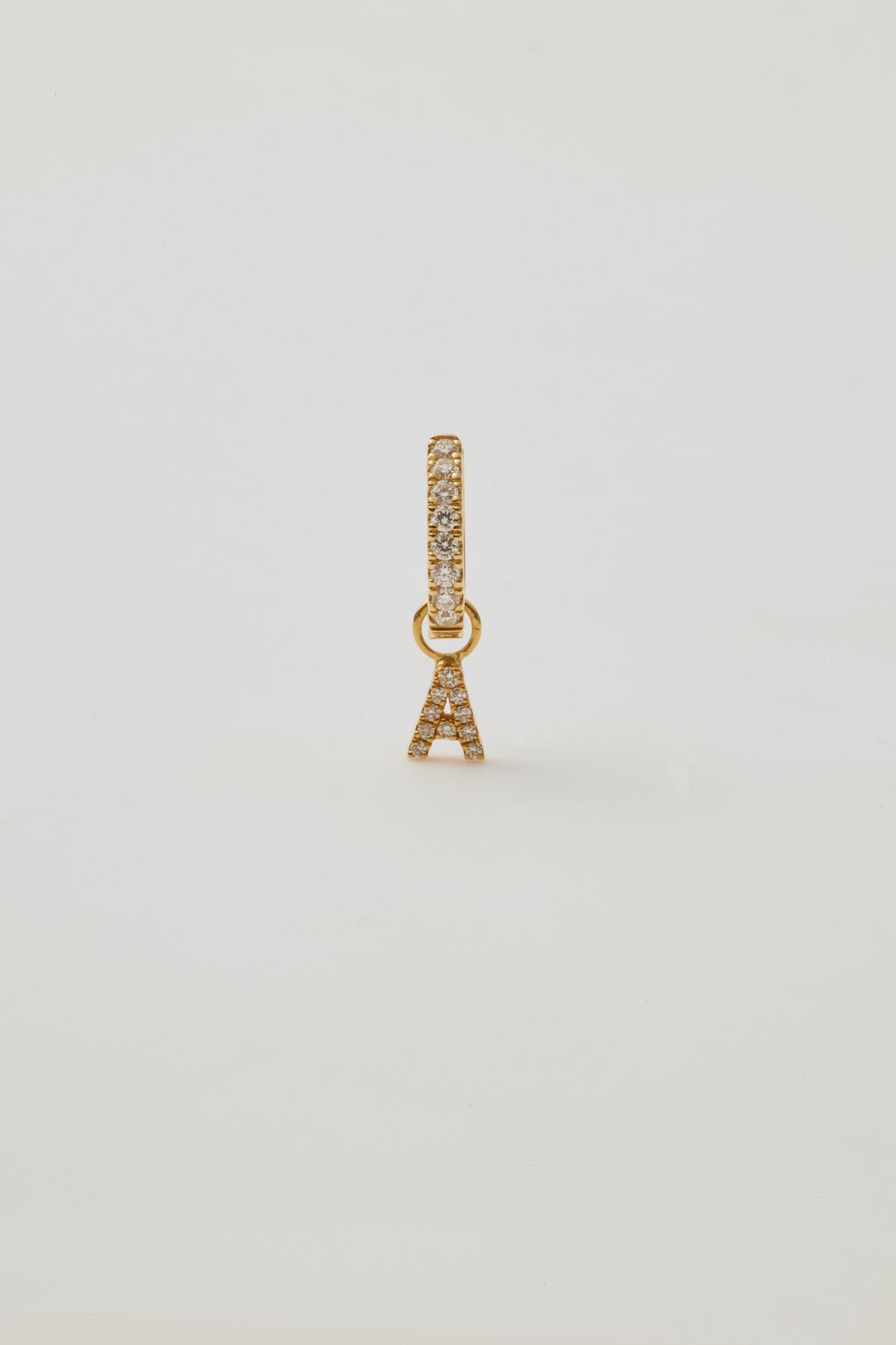 Crafted in 14k gold, this single white sapphire huggie earring pairs pavé-set white sapphires with a coordinating white sapphire letter charm. The signature hinged design lets you slide charms on and off, allowing you to personalise, rearrange, and create a piece that’s uniquely yours.